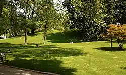Dominierend im Garten ist der etwa 6 m hohe[1], mittig gelegene Rosenhügel. Dieser ist der Rest des Erdkerns der im 17. Jahrhundert errichteten Mirabellbastion (Bollwerk St. Vitalis), die einen Teil der ehemaligen Lodronschen Stadtbefestigung bildete.