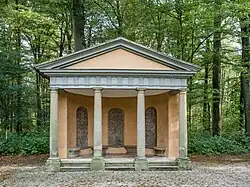 Das Bauwerk wurde im Jahr 1808 als Kurhalle im Theresienhain errichtet. Heute wird es als Ruhetempel bezeichnet.