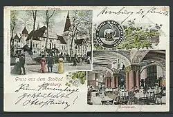1617 sah sich der nach mehreren Überschwemmungen stark verschuldete Rat der Stadt Bernburg gezwungen, das Krumbholz an Christian I. (Anhalt-Bernburg) zu verkaufen. Bis zum Ende des 19. Jahrhunderts nutzten erst die Bernburger, ab 1863 die Dessauer Askanier das große Gebiet zur Jagd und für die Forstwirtschaft. 1883 wurde in Bernburg die Sodafabrikation aufgenommen. Aus Dankbarkeit gegenüber dem Rat der Stadt Bernburg für die erteilte Genehmigung zur Ansiedlung kauften die Solvay-Werke 1893 das Krumbholz vom anhaltinischen Fiskus zurück und schenkte es der Stadt. Die Stadt Bernburg bestallte einen Waldwärter und errichtete für ihn ein 1897 fertiggestelltes Waldwärterhaus, das heute den Eingang vom Tiergarten Bernburg ziert. Zum Waldwärterhaus gehörten außerdem ein Stall, eine öffentliche Toilettenanlage sowie ein größerer Hof mit Baumschule.[1] Am 2. November 1897 wurde Oberbürgermeister Felix Leinveber in sein Amt gewählt. Schon kurz nach seiner Einführung soll er vorgeschlagen haben, Bernburg zu einem Kur- und Heilbad zu machen, um einen Gegenpol zur chemischen Industrialisierung zu setzen. Die Solvay-Werke erklärten sich bereit, hierfür die in ihrem Bergbau auftretende Sole kostenlos zur Verfügung zu stellen; für deutsche Verhältnisse hatte sie einen außergewöhnlich hohen Salzgehalt.