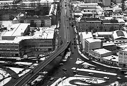 Quer über den Platz verband in den 1970er Jahren eine Stahlbrücke den Kurt-Schumacher-Damm und die Ollenhauerstraße miteinander. Diese wurde im Jahr 1968 gebaut und Anfang der 1980er Jahre abgebaut.[1]