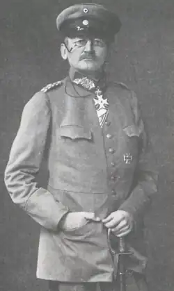 Nach Ausbruch des Ersten Weltkrieges wurde er als z.D.-Offizier wiederverwendet und zum Kommandeur der Königlich-Sächsischen 46.-Reserve-Infanterie-Brigade ernannt. Mit seiner Brigade beteiligte er sich 1914 und im Frühjahr 1915 an zahlreichen Gefechten und konnte sich unter anderem beim Angriff auf Prosnes in der Champagne am 26. September 1914 auszeichnen. Im Oktober 1914 wurde er mit dem Eisernen Kreuz I. Klasse ausgezeichnet.[5] Er wurde für seine Verdienste am 3. Mai 1915 mit dem Ritterkreuz des Militär-St.-Heinrichs-Ordens ausgezeichnet.[6] Im Februar 1916 wurde er mit dem Komturkreuz I. Klasse des sächsischen Verdienstordens mit Schwertern ausgezeichnet.[7] Er schied später aus der Armee aus und zog sich auf sein Rittergut Ohorn zurück und spendete am 8. Dezember 1915 des Jahres 100 Mark an die Kriegshilfskasse.[8] Im Februar 1918 wurde er für den verstorbenen Rittergutsbesitzer Karl Adolf Steiger aus Kleinbautzen für die Lausitzer Stände in die Erste Ständekammer des Sächsischen Landtag gewählt.[9] Er verstarb im Jahre 1922 nach langem schweren Leiden.[10][11] Dem Landtag gehörte er bis zur Auflösung der konstitutionellen Monarchie in Sachsen im November 1918 an.