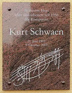 - ↑ Komponist Kurt Schwaen gestorben. ( vom 13. Juni 2010 im Internet Archive) In: Süddeutsche Zeitung, 10. Oktober 2007.