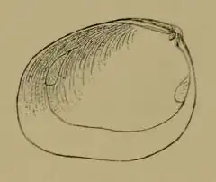 Das oft etwas ungleichklappige, mäßig aufgeblähte Gehäuse ist eiförmig und am Vorderende etwas gelängt. Der Vorderrand ist stark, der Hinterrand weniger stark gekrümmt. Der Ventralrand ist fast gerade. Die vergleichsweise großen Gehäuse werden bis 9,2 mm lang. Die Höhe erreicht etwa 80 % der Länge. Die opisthogyraten Wirbel sitzen etwas hinter der Mitte der Gehäuselänge. Das Gehäuse ist am Vorderende oft geringfügig nach der einen oder anderen Seite verdreht. Dadurch ist auch eine Klappe etwas weniger stark aufgebläht. Das Schloss besitzt unter dem Wirbel ein kräftig ausgebildetes Resilium, das in einem tiefen Resilifer sitzt. Es ist kein externes Ligament vorhanden. Die rechte Klappe besitzt einen vorderen, langen und einen hinteren, kürzeren lamellenartigen Zahn. Die beiden Lamellen divergieren v-förmig zu beiden Seiten des Resiliums. Der dorsale Gehäuserand und die beiden lamellenartigen Zähne schließen jeweils eine Längsgrube zwischen sich ein. Die linke Klappe besitzt zwei dünne Lamellen, etwa parallel zum dorsalen Gehäuserand, die in die beiden Längsgruben der rechten Klappe passen.