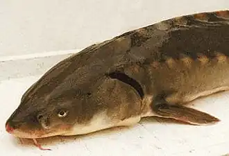 Störe sind Grundfische, die sich hauptsächlich von Insekten und kleinen Crustaceen ernähren. Jungtiere wurden beobachtet, die in ihrem Magen mehr als 90 % nicht verwertbare Stoffe hatten, woraus man schließen kann, dass sie den Grund eher zufällig "absaugen".[1] Erwachsene Tiere im Süßwasser leben vor allem von Mollusken und Polychaeten, sowie von kleinen benthischen Fischen in den Ästuaren oder Crustaceen und Insekten.[3]