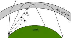 Das Reflexionsverhalten ist vom Winkel der eintreffenden Strahlung des Senders abhängig. Sendeantennen werden auch unter Berücksichtigung dieses Aspektes entworfen und gebaut. Der niedrigste Abstrahlwinkel einer Kurzwellenantenne sollte nicht über 5 Grad liegen. Die F2-Schicht wird in einer Entfernung vom Sender von etwa 1500 bis 2000 km getroffen. Nach der Reflexion kann das Signal in einer Entfernung von 3000 bis 4000 km am Erdboden empfangen werden. Durch diese große Sprungdistanz entsteht ein Bereich – auf der Erdoberfläche ringförmig um den Sender, in dem das Signal nicht empfangen werden kann – die so genannte Tote Zone. Ist die Entfernung zwischen Sender und Empfänger größer als die einfache Sprungdistanz, sind mehrere Ionosphären-Reflexionen erforderlich, um diese Distanz zurückzulegen (Multi Hop).