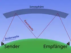 Die Reflexion von Kurzwellen an der elektrisch leitfähigen Ionosphäre ist verlustarm, funktioniert aber nur bis zu einer einfallswinkelabhängigen Grenzfrequenz (Maximum Usable Frequency – MUF). Die Reflexion am Boden ist für den größten Teil der Erde, nämlich die leitfähigen Ozeane ebenfalls verlustarm; bei den Kontinenten ist sie von der Leitfähigkeit des Bodens, insbesondere vom Grundwasserspiegel abhängig. Die Ionosphäre wird in erster Linie durch kurzwellige Ultraviolett-Strahlung der Sonne erzeugt.