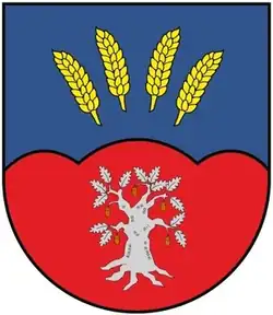 Blasonierung: „In Blau mit rotem Dreiberg; oben vier fächerförmig gestellte goldene (gelbe) Ähren, unten eine silberne (weiße) Eiche mit goldenen (gelben) Eicheln.“ Der Gemeinderat hat am 12. März 2015 ein neues Wappen beschlossen. Die Ähren symbolisieren die vier Ortsteile Aspe, Essel, Kutenholz und Mulsum, aus denen am 1. Juli 1972 die neue Gemeinde Kutenholz hervorgegangen ist. Der Dreiberg steht für die Stader Geest und die Eiche entstammt dem Wappen der ehemaligen Gemeinde Kutenholz. Hier wurde gegen die heraldische Farbregel verstoßen, welche lautet, dass Farben nicht an Farben, sondern nur an Metalle (Gold und Silber) grenzen dürfen. |