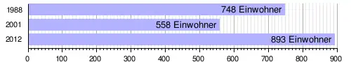 Im Hauptort lebten bei der Volkszählung 2012 893 Einwohner in 163 Haushalten,[1] bei der Volkszählung 2001 558 in 87 Haushalten[4] und bei der Volkszählung 1988 748 in 117 Haushalten.[5]
