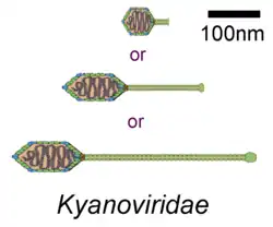 - ↑ NCBI Taxonomy Browser: Kyanoviridae, Details: Kyanoviridae (family).