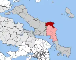 | Lage in der Gemeinde Kymi-Aliveri und im Regionalbezirk Euböa | |||