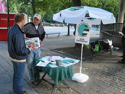 - ↑ Vgl. Leiv Nordstrand, Da Kystpartiet ble til. Vortrag vom 12. März 2005 ( des vom 15. Juni 2011 im Internet Archive) Info: Der Archivlink wurde automatisch eingesetzt und noch nicht geprüft. Bitte prüfe Original- und Archivlink gemäß Anleitung und entferne dann diesen Hinweis. www.kystpartiet.no (aufgerufen am 11. September 2009)