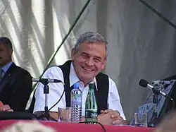 László Tőkés (* 1. April 1952 in Cluj) ist ein Angehöriger der ungarischen Minderheit in Rumänien und evangelisch-reformierter Geistlicher, der als Auslöser für die rumänische Revolution gilt. Er ist emeritierter[1] Bischof der Ungarischen Reformierten Kirche und Präsident des Ungarischen Nationalrates in Siebenbürgen. Derzeit ist er Mitglied des Europäischen Parlaments für die Demokratische Union der Ungarn in Rumänien (UDMR).