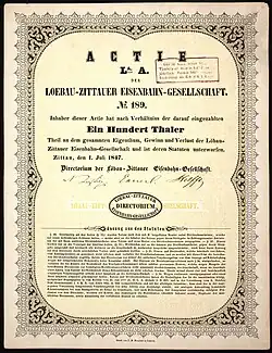Die Löbau-Zittauer Eisenbahngesellschaft mit Sitz in Zittau erhielt am 25. Juni 1845 die Konzession zum Bau einer Eisenbahn, um die Fabrikstadt Zittau an die Bahnstrecke Dresden–Görlitz der Sächsisch-Schlesischen Eisenbahngesellschaft anzuschließen. Die 34 km lange Strecke begann in Löbau und erreichte in südöstlicher Richtung durch die Oberlausitz über Großschweidnitz – Herrnhut – Oberoderwitz die Stadt Zittau. Die Eröffnung fand am 10. Juni 1848 statt. Den Betrieb führte die Löbau-Zittauer Eisenbahn selbst durch.