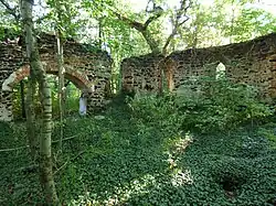 Gedenkstein zur Erinnerung an Alt-Lönnewitz in der Ruine der einstigen Dorfkirche