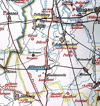 Alt- und Neu-Lönnewitz auf einer geschichtlichen Karte des Kreises Liebenwerda (1910).