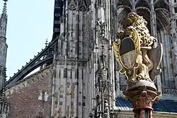 Der Ulmer Löwenbrunnen steht im nordwestlichen Bereich des Münsterplatzes.