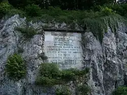 Etwa neun Meter über der heutigen Bundesstraße 16 befindet sich am Teufelsfelsen eine zehn Meter hohe Schrifttafel aus Ihrlersteiner Grünsandstein. Sie trägt in großen Bronzelettern das Fertigungsjahr 1794 (lateinisch) und die lateinische Gedenkinschrift: