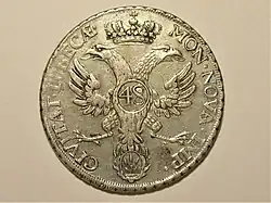 Lübecker Vierteltaler (Silberabschlag von 2 Dukatenstempeln), Wertseite