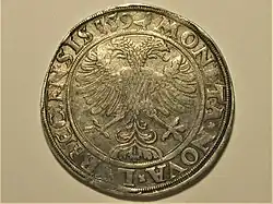 Die große Akzeptanz des zu Beginn des 16. Jahrhunderts erstmals ausgeprägten Talers veranlasste auch Lübeck unter Bürgermeister Nikolaus Brömse, dieses neue Großsilbernominal 1537 erstmals herzustellen.[11] Es pendelte sich ein Gesamtsystem ein, nach dem der Gulden den Wert von 2⁄3 Taler erhielt. Der Gulden entsprach weiterhin 32 Schillingen (gleich 2 Mark) und der Taler 48 Schillingen (gleich 3 Mark). Bei diesem Grundsystem blieb es bis zum Ende der Lübecker Silbermünzenprägung im 18. Jahrhundert.