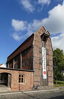 Der Speicher wurde um 1815 errichtet, hat einen rechteckigen, schlanken Fachwerkbau und besitzt vier Speichergeschosse. Das Mansarddach ist mit Biberschwanzziegeln gedeckt. Die historische Aufzugstechnik und die Schütthöhenkennzeichnungen für verschiedene Getreidearten sind erhalten geblieben. 1910 wurde westlich ein eingeschossiger Anbau ergänzt.