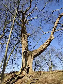 Die Wendeneiche mit einem Stammumfang von 5,35 Metern steht am Hang des Wendfelds, nordwärts der alten Klosterstraße in Richtung Schwinz.[10] Die trockenen Reste der alten inzwischen abgestorbenen Wendeneiche stehen heute an einer nachgewachsenen, auch schon stärkeren Eiche, deren Krone vom umgrenzenden Rotbuchenwald stark beengt wird. Diese Wendeneiche (Quercus robur) soll zu einer alten slawischen Gerichtsstätte gehört haben.[11]