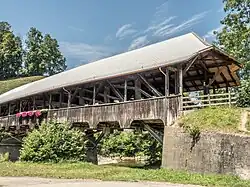 Lütisburgs Ortsbild ist von Brücken und Stegen geprägt, unter anderem der Letzibrücke (1853, 1969), dem Guggenloch-Eisenbahnviadukt (1870, 1945) und der neuen Thurbrücke (1997).[5] Die gedeckte Holzbrücke über die Thur an der Kantonsstrasse nach Flawil aus dem Jahr 1790 diente bis 1997 dem Autoverkehr. Auf der 1853 errichteten hölzernen Letzibrücke überquert der Wanderweg nach Ganterschwil den Necker.
