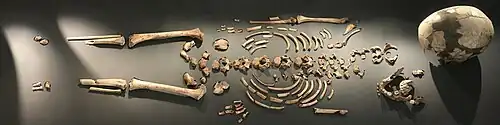 - Magdalénien IV: Seine Mächtigkeit variiert zwischen 0,25 und 1,00 Meter, mit Überschwemmungslagen. Schicht J, Niveaus 14 bis 18.
