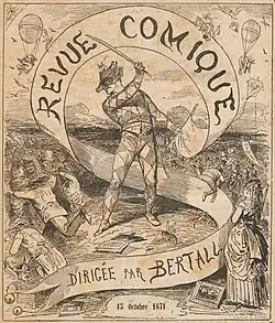 Die Satirezeitschrift La Revue Comique erhielt ihren Namen in Anlehnung an die zwischen 1848 und 1849 erschienene La Revue Comique. Die Inhalte der Zeitschrift richteten sich meist gegen die Pariser Kommune. Die Illustrationen stammten von Bertall, Cham, Alfred Grévin, Paul Hadol und Eugène Ladreyt.[1]