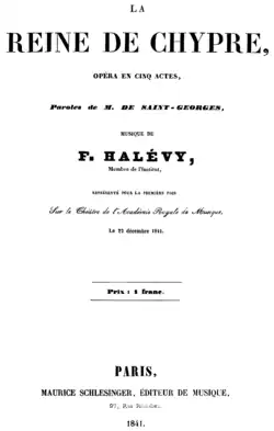 - ↑ a b c d e f g Sieghart Döhring: La Reine de Chypre. In: Pipers Enzyklopädie des Musiktheaters. Band 2: Werke. Donizetti – Henze. Piper, München/Zürich 1987, ISBN 3-492-02412-2, S. 646–648.