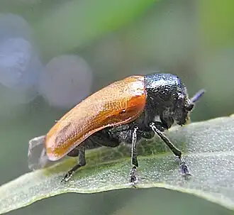 Die Flügeldecken sind einfarbig gelbbraun und besitzen keinen Schulterfleck. Sie sind zusammen nur wenig breiter als der Halsschild.