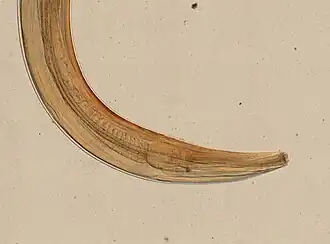 Vorderende von Dermatoxys veligera, einem Blinddarmparasiten bei Kaninchen und Hasen | ||||||||||||
