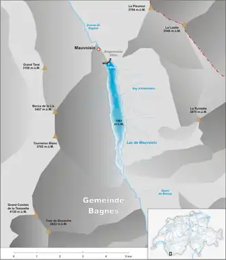 Der Lac de Mauvoisin ist ein Stausee, der zuhinterst im Val de Bagnes im Südwesten des Schweizer Kantons Wallis liegt. Neben der Energienutzung schützt der Stausee das Val de Bagnes vor Flutwellen, die durch Abbrüche des Giétrozgletschers verursacht werden können.[1]