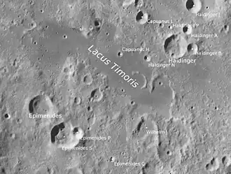 Der Lacus Timoris (lateinisch für See der Furcht) ist ein erstarrter Lavasee auf dem Erdmond, der von der Entstehung her den größeren Maria gleicht. Sein mittlerer Durchmesser beträgt rund 150 km. An seiner Westseite liegt der Mondkrater Hainzel, am südlichen Rand liegt der Krater Epimenides und am nördlichen Rand liegt Haidinger.