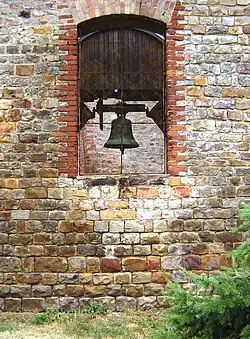 | Wappenbegründung: Die Farben des Ortes sind Weiß (Silber) - Grün. Im Jahre 1139 überlässt der Bischof Wiger von Brandenburg dem Kloster Leitzkau 3 Dörfer. Darunter auch das Dorf Ladeburg. Im selben Jahrhundert wurde aus wuchtigen Bruchsteinen die Kirche erbaut. Im Zuge der Erbauung der Kirche wurde gleichzeitig das Haupteingangstor als auch die dazu gehörigen Außenmauern aus Bruchsteinen mit errichtet. Anfang der 80er Jahre musste leider wegen starker Baufälligkeit der gesamte Kirchturm abgetragen werden. Das Haupteingangstor konnte Dank umfangreicher Werterhaltungsmaßnahmen in seiner Art und Form bisher erhalten werden. Auf Grund der historischen Bedeutung wurde dieses Eingangstor als Symbolik im Wappen aufgenommen.