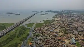 Lagos, die größte Stadt Nigerias, erstreckt sich im Westen und Süden der Lagune. Die mehr als zehn Kilometer lange Third Mainland Bridge ist eine Umgehungsstraße, die am Westrand der Lagune errichtet wurde.