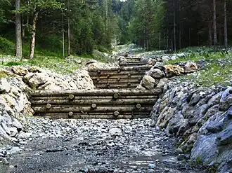 Holzverbauungen in der Schmiedlaine oberhalb des Lainbachs | ||