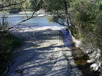 Mündung im Gemeindegebiet von Chancy (CH) in die RhôneKoordinaten: 46° 8′ 49″ N, 5° 57′ 58″ O; CH1903: 486230 / 111676