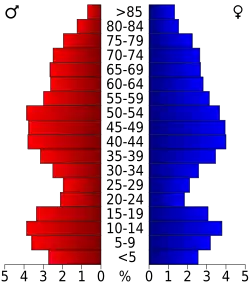 Auf das gesamte County bezogen setzte sich die Bevölkerung zusammen aus 24,10 % Einwohnern unter 18 Jahren, 6,00 % zwischen 18 und 24 Jahren, 23,60 % zwischen 25 und 44 Jahren, 26,80 % zwischen 45 und 64 Jahren und 19,50 % waren 65 Jahre alt oder darüber. Das Durchschnittsalter betrug 43 Jahre. Auf 100 weibliche Personen kamen 97,60 männliche Personen, auf 100 Frauen im Alter ab 18 Jahren kamen statistisch 94,70 Männer.