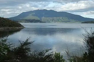 | Lake Rotomahana mit dem Mount Tarawera im Hintergrund | ||