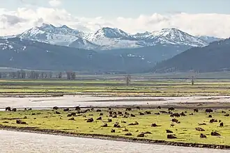 ![]() Bisons am Lamar River im Lamar Valley | ||