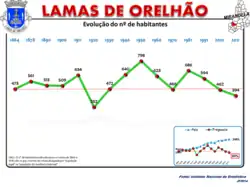 Bevölkerungsentwicklung der Gemeinde Lamas de Orelhão (1864–2011)