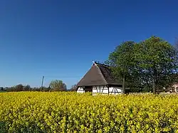 Sehenswert ist das denkmalgeschützte Ensemble um die Kirche mit der reetgedeckten Pfarrscheune, dem gepflegten Friedhof und dem 1799/1800 errichteten Pfarrhaus und dem aus dem ehemaligen Stall entstandenen Begegnungshaus der Kirchgemeinde. Die Kirche mit Deckenmalereien im Kirchenschiff stammt aus dem 14. Jahrhundert.