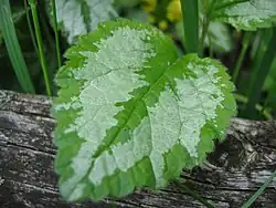 - Silber-Goldnessel (Lamium argentatum (Smejkal) Henker ex G.H.Loos, Syn.: Galeobdolon argentatum Smejkal, Lamium galeobdolon subsp. argentatum (Smejkal) J.Duvign.): Die Heimat ist West- und Mitteleuropa[1], allerdings handelt es sich um eine Kulturpflanze ohne natürliches Verbreitungsgebiet. Sie gilt als invasiver Neophyt und wird in Deutschland auf der "Schwarzen Liste" geführt.[9]