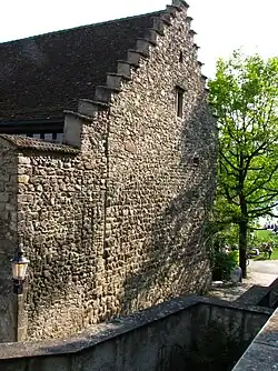 10. Teile der Burganlage mit dem 28 Meter hohen Breny-Turm sind immer noch Bestandteil der südwärts führenden Reste der einstigen Stadtmauer. Kulturbaukasten Rapperswil-Jona, 36 Museen ohne Dach: Diese und weitere historische Informationen entstammen u. a. auch den 36 Schaukästen in der Altstadt. Die Historie ist den Informationstafeln im Stadtmuseum Rapperswil entnommen.