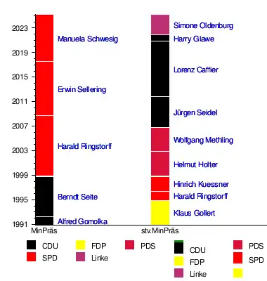 | Berndt Seite (CDU) | CDU, FDP | 19.03.1992–08.12.1994 | 1. | Kabinett Seite I |