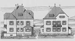 Der ortsansässige Baumeister Alfred Große entwarf im August 1904 für die Inhaber einer Kötzschenbrodaer „Cognac-Destillerie“ (also einer Weinbrand-Destillerie), Friedrich Bernhard Fischer und Friedrich Emil Dittmann, ein zweigeschossiges Wohnhaus, dessen Baugenehmigung im März 1905 erteilt wurde. Große war federführend für die Ausführung und Bauleitung. Die Fertigstellungsanzeige erfolgte im Oktober 1905.
