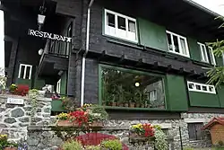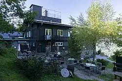 Unterhalb des Hauses selbst befindet sich am Beginn des Zufahrtsweges von der öffentlichen Straße ein gleichzeitig errichtetes, analog dem Landhaus selbst gestaltetes dreigeschoßiges Gebäude mit flachem Pultdach, das als Garage und Hausmeisterwohnung konzipiert war.[5]