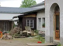 Die drei Nebengebäude mit Satteldach sind jeweils eingeschossig. Sie gruppieren sich auf der Nordseite um den Hof, wobei die Westseite zur Schuchstraße offen bleibt. Ursprünglich waren die Nebengebäude durch einen überdeckten Umgang verbunden, und das am Haupthaus liegende Nebengebäude hatte eine zum Garten hin offene Halle.