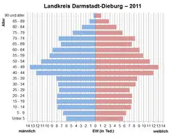 - ↑ Ausgewählte Strukturdaten über die Bevölkerung am 9. Mai 2011 in den hessischen Gemeinden, Kreis Darmstadt-Dieburg, Alter + Geschlecht. (PDF; 1,8 MB) In: Zensus2011. Hessisches Statistisches Landesamt, S. 33, archiviert vom (nicht mehr online verfügbar) am 30. August 2021.
