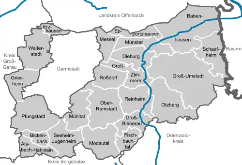 | Lage des Landkreises Darmstadt-Dieburg in Hessen | |